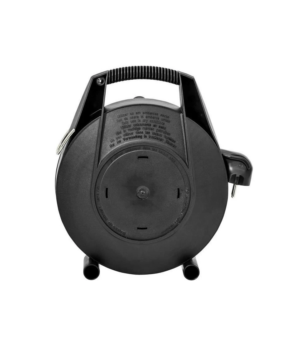 Confort-line cl-x noir 10m h05vv-f 3g1,5 – enrouleur ménager 10m bénéficiant d’une grande facilité d’enroulement. Anti-chocs, formes esthétiques, doté d’une poignée ergonomique avec crochet de suspension – 4 prises 2p+t, 16a/230v. Puissance maxi 2300w sous 230v