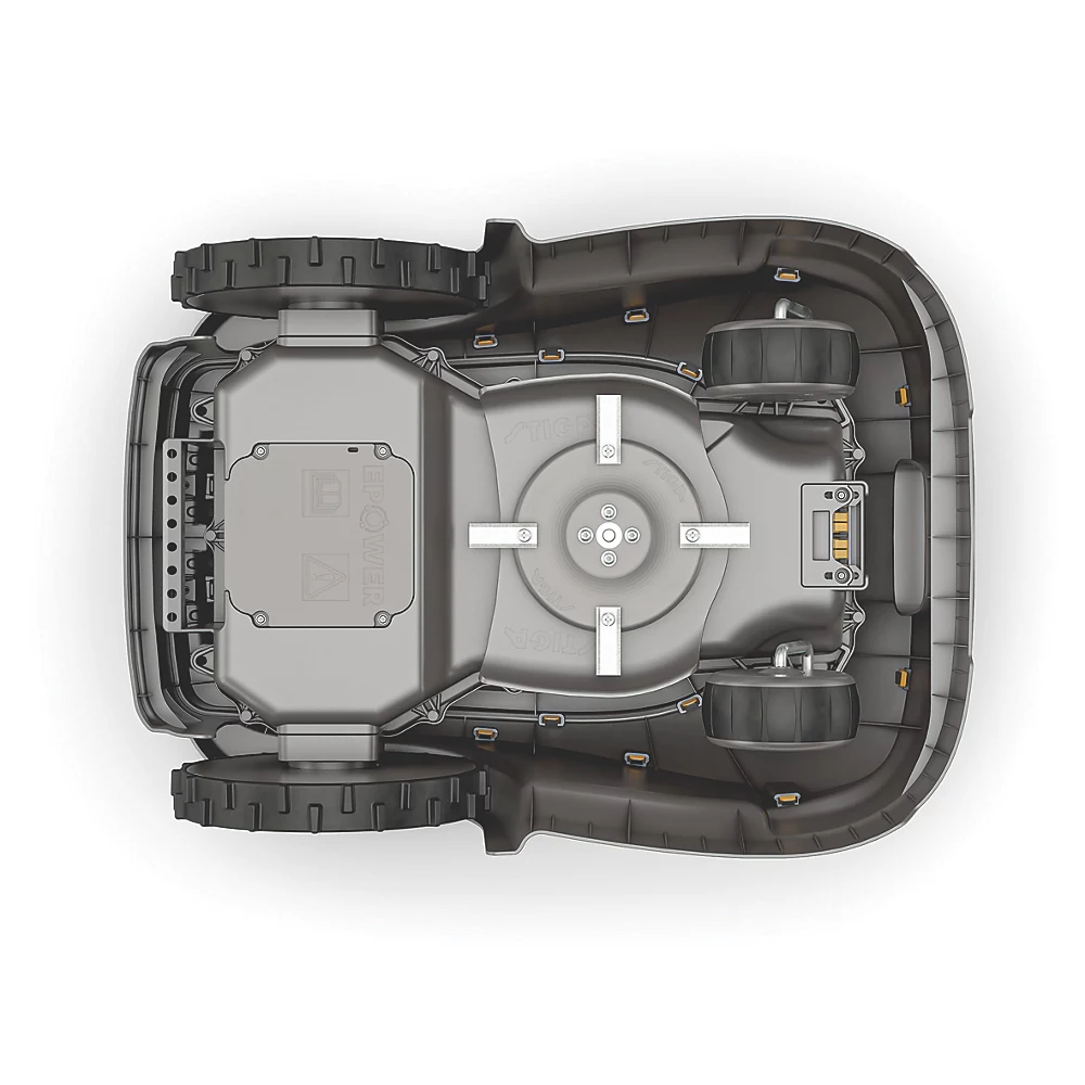 Compact et léger. Sillonne des jardins de toutes formes et de toutes tailles et s’insère facilement dans les espaces les plus étroits, entre les arbres et les arbustes. Alimenté par une batterie de 2,5Ah, ce qui suffit amplement pour une surface de 600m². Pratique à utiliser, avec des commandes simplifiées intuitives et une connexion Bluetooth qui permet de le commander à partir d’un téléphone portable.